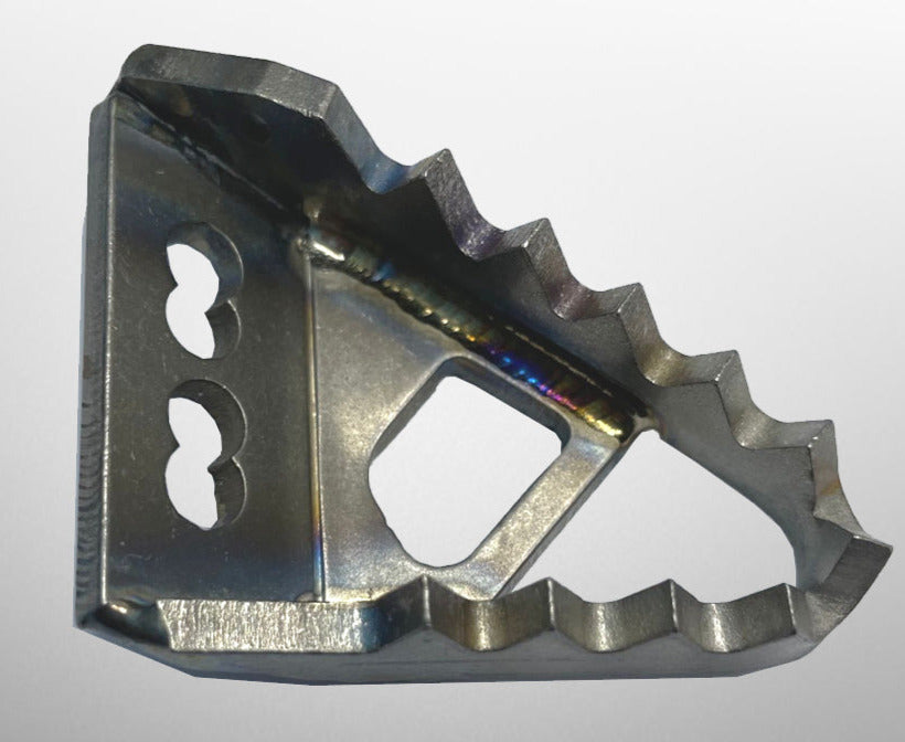 This replacement Stainless Brake Pedal tip is crafted from high grade stainless steel, boasting a 10mm width increase and 20% increase in size for maximum grip and traction with its aggressive tread design. No longer will riders have difficulty locating the brake pedal as it fits KTM, Husqvarna, Gas Gas, and similar levers with ease. Compatible with stock hardware, it's available at a fraction of the price of competitors and requires no modifications for installation. Offering 5mm offset to move the pedal more towards the rear, to help in technical situations.